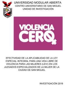 Efectividad de la Aplicabilidad de la ley especial integral para una vida libre de violencia para las mujeres (LEIV) en los juzgados especializado de la mujer de la ciudad de San Miguel