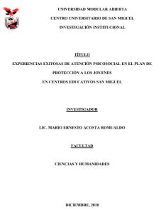 Experiencias exitosas de atención psicosocial en el plan de protección a los jóvenes en el centro educativos San Miguel