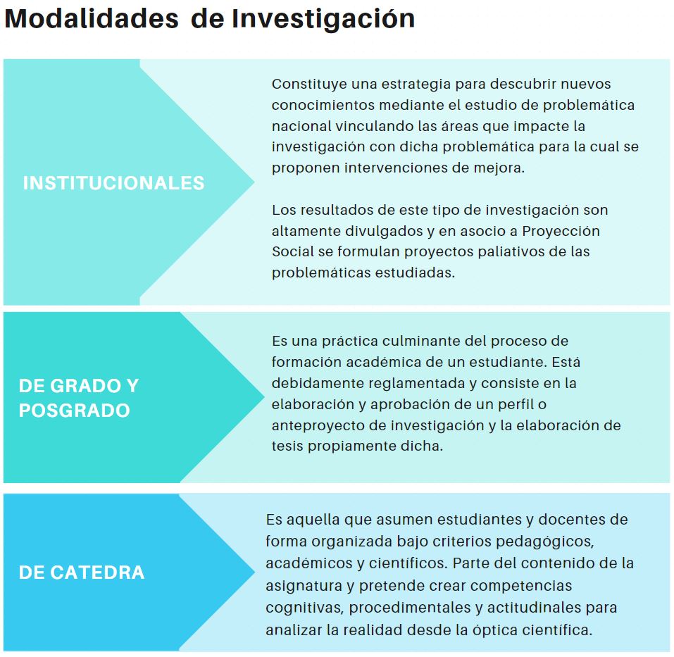 Las 3 modalidades de investigación que la universidad ejecuta son: